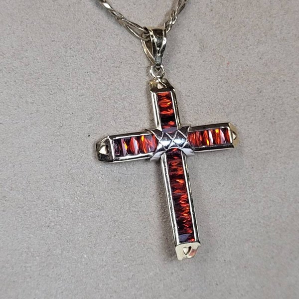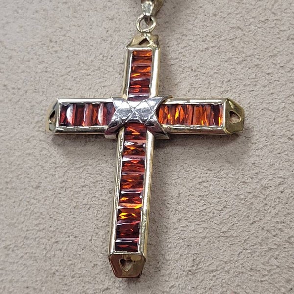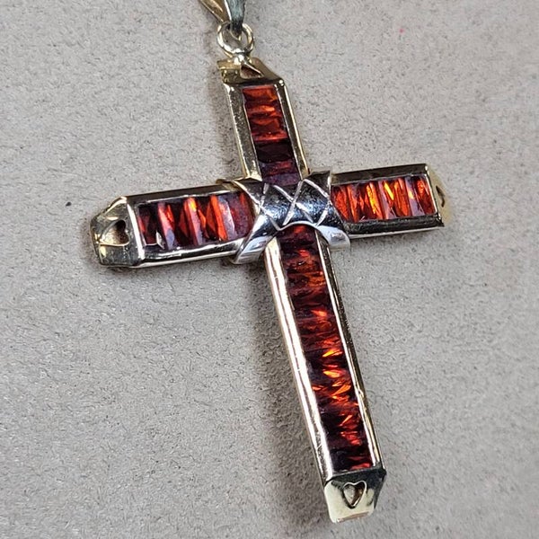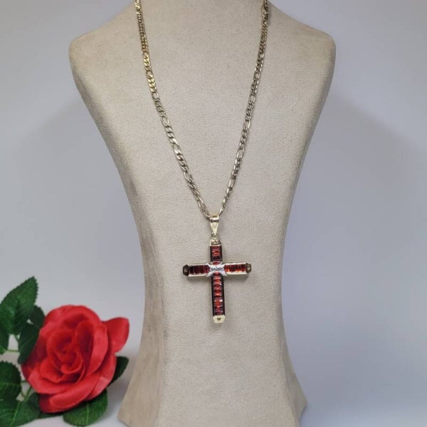 ❤Antikes leuchtendes Granat Kreuz aus 585er Gelbgold Handarbeit