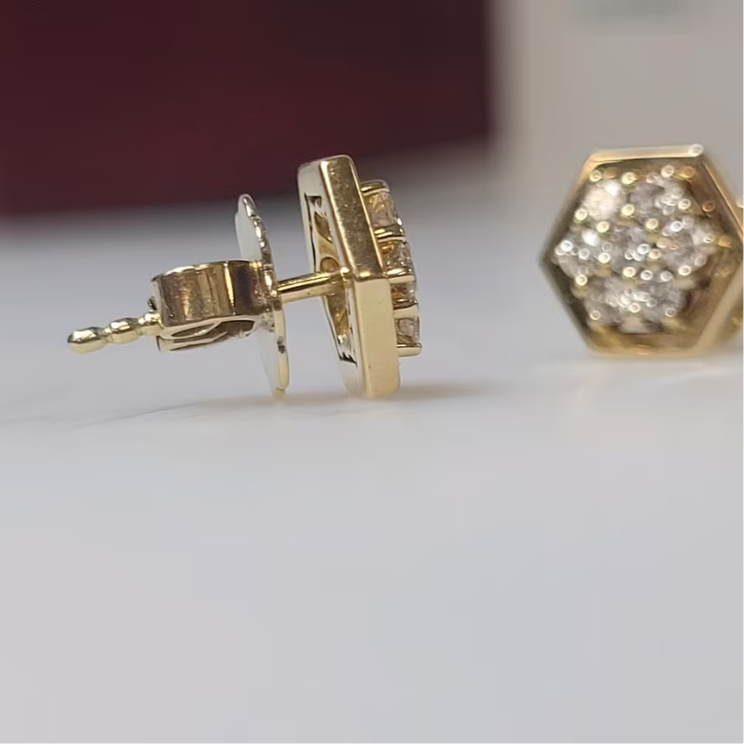 ✨ Wunderschöne Ohrstecker aus 585er Gelbgold im edlen Hexagon-Design mit funkelnden Brillanten ✨
