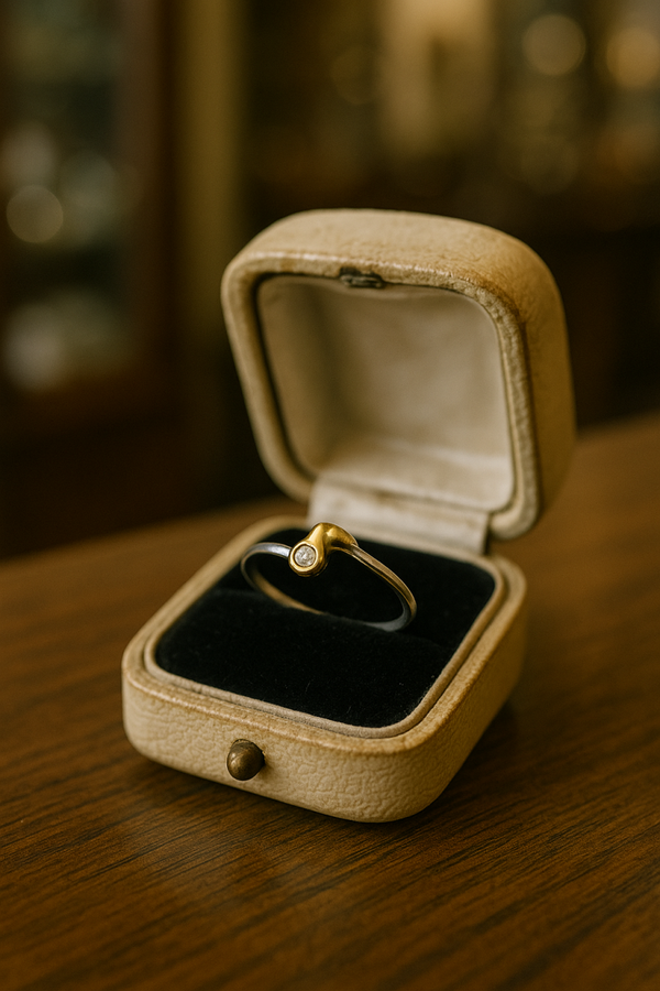 Zarter Ring aus 950er Platin, 585er Gelbgold und Brillant.