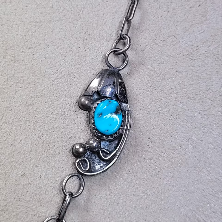 Feines Navajo Sterling Silber Collier mit Türkisen – Handarbeit, signiert