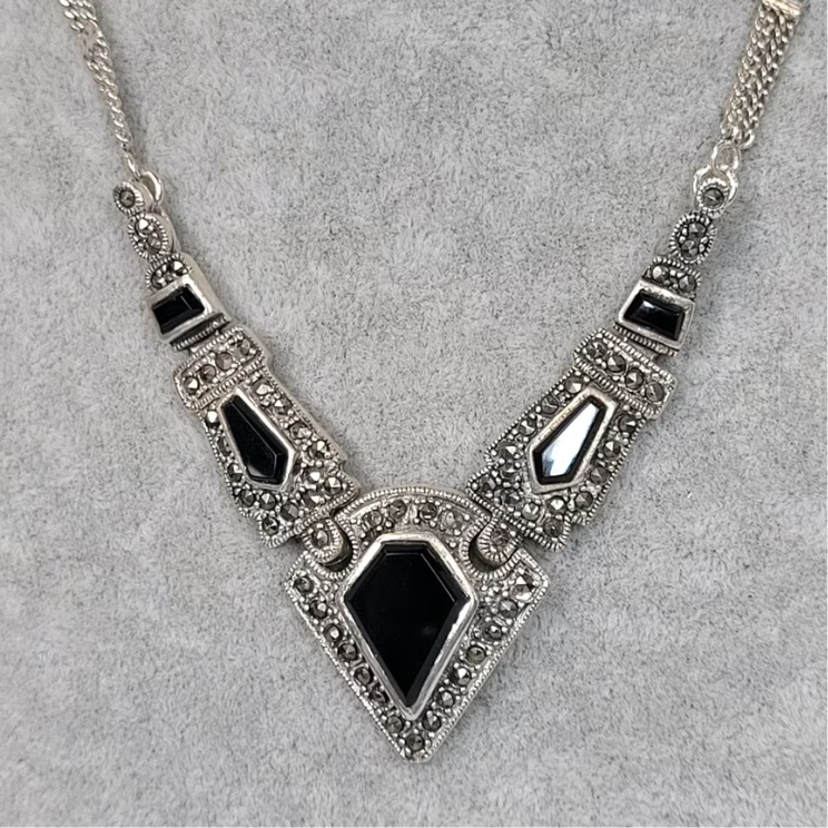 ❤ Vintage Collier im Art Deco Stil aus 925er silber und Onyx
