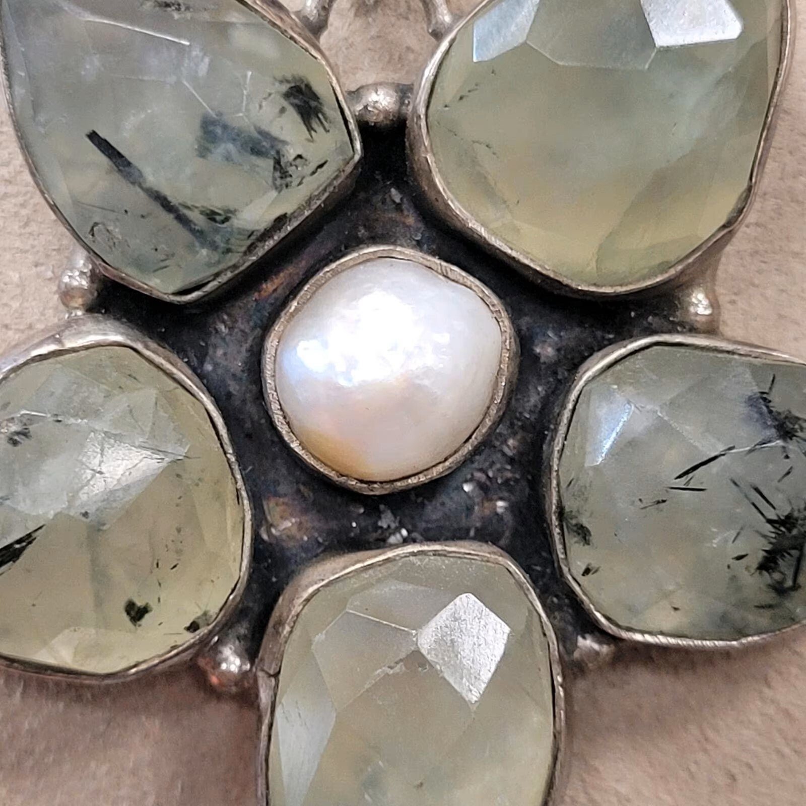 ❤ Großer Blüten Anhänger aus 925er Silber und Prehnit