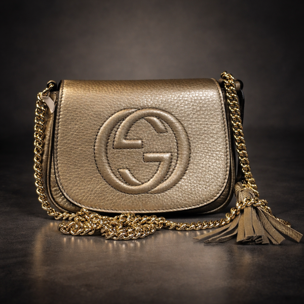 ❤Gucci Soho Mini Disco Bag Metallic Gold Leder