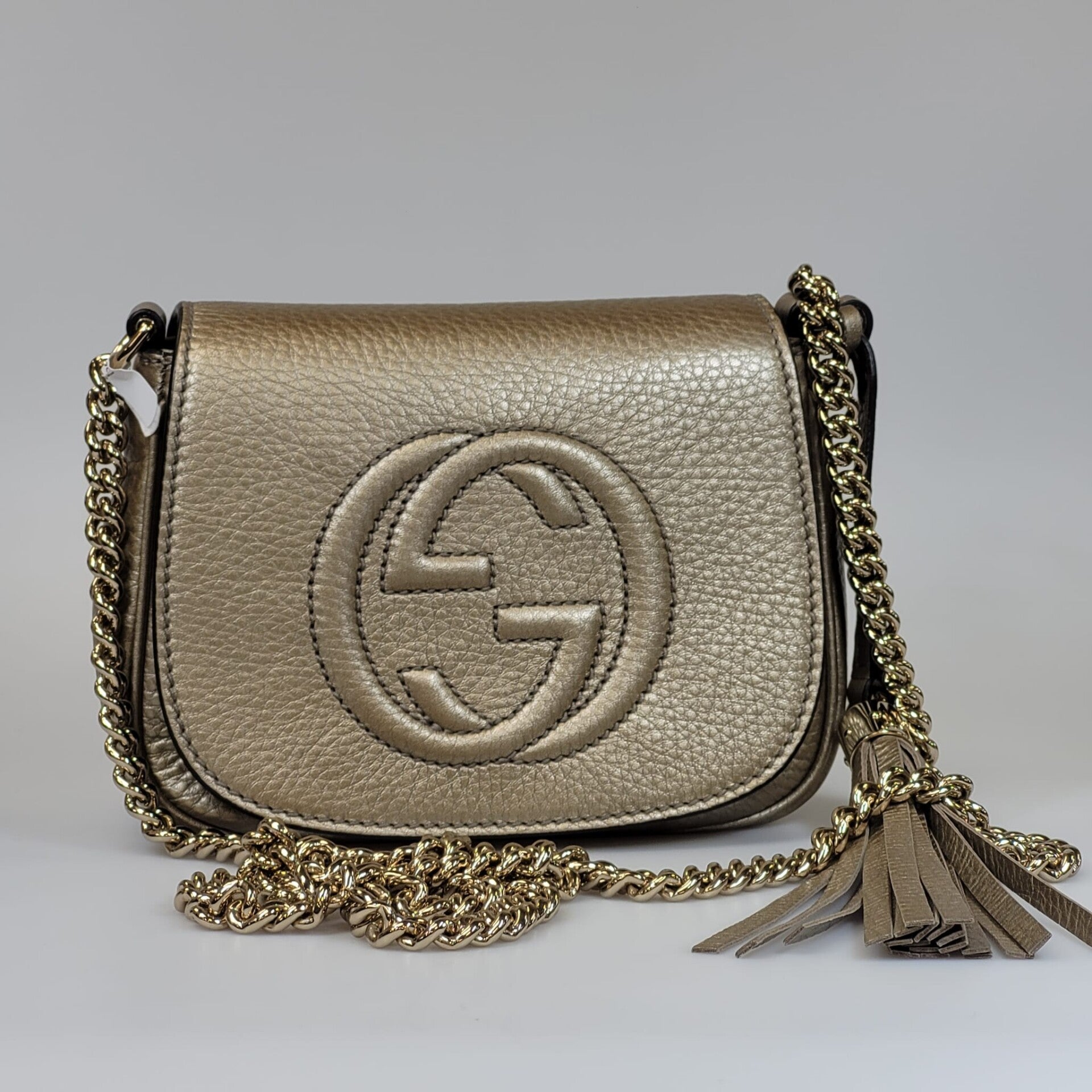 Gucci Soho Mini Disco Bag – Metallic Gold – Leder – Original – mit Staubbeutel & Booklets